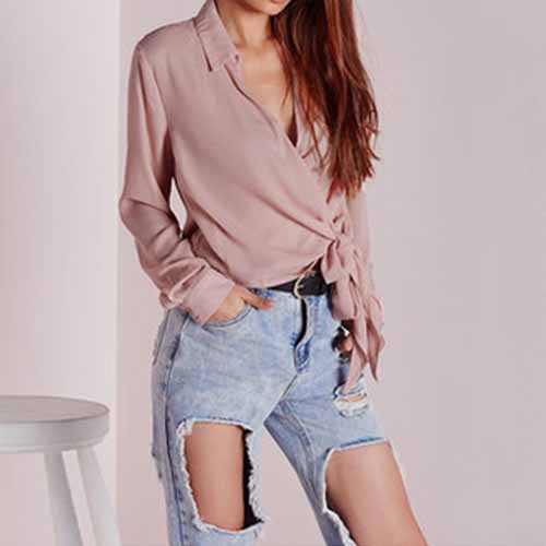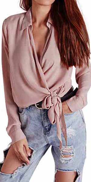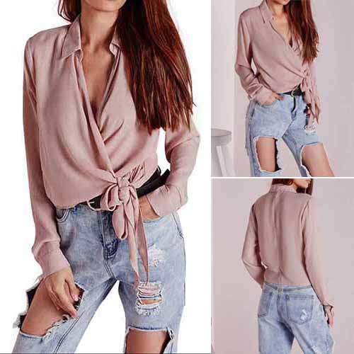 And its deep v-neck and knotted hem design makes it look more sexy and chic. We suggest you