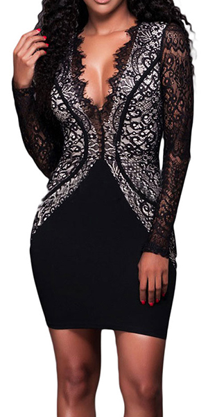 deep v-neck, long sleeve and back zipper fastening design, this lace dress can give you an utter