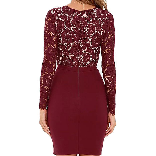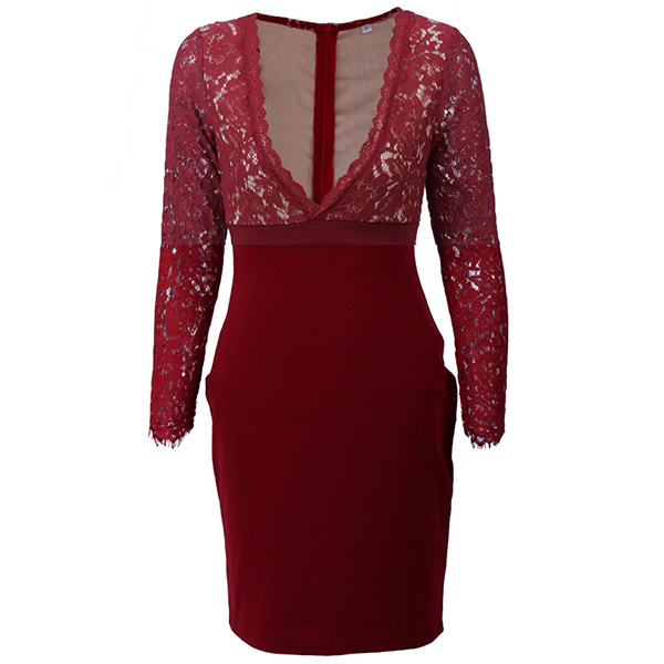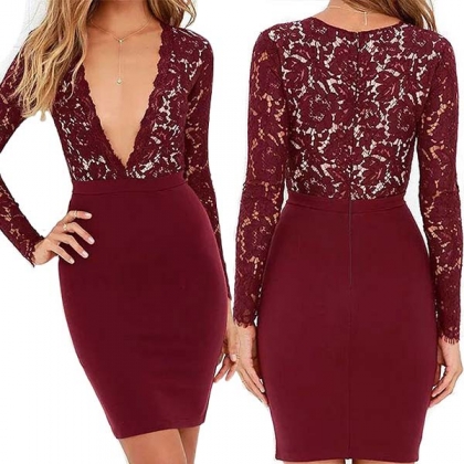 have this dress in your team. The deep v-neck and lace spliced design make this piece look so sexy