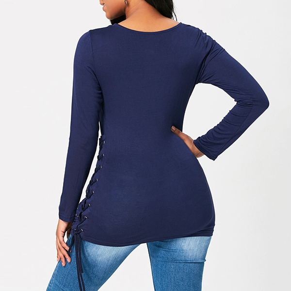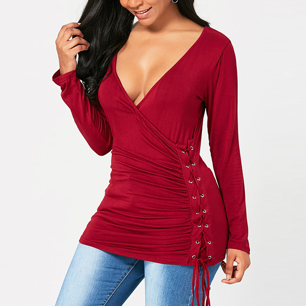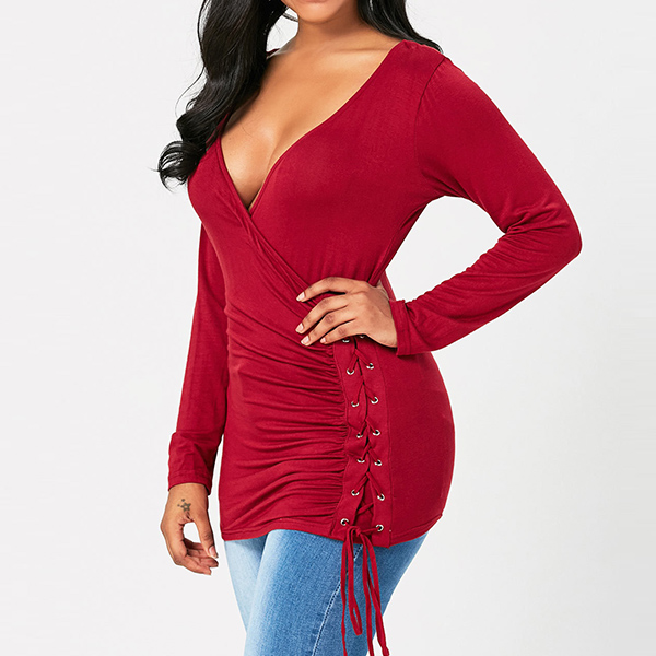 Easy to achieve for a cozy yet sexy style with this t-shirt! Boasts a solid color,finished with long sleeve,deep v-neck