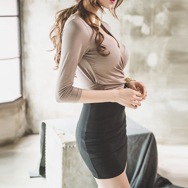 Including a long sleeve deep v-neck top and a high waist skirt,this two-piece set can perfect demonstrate your seductive curve,