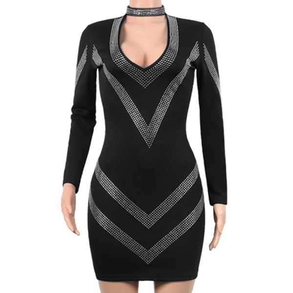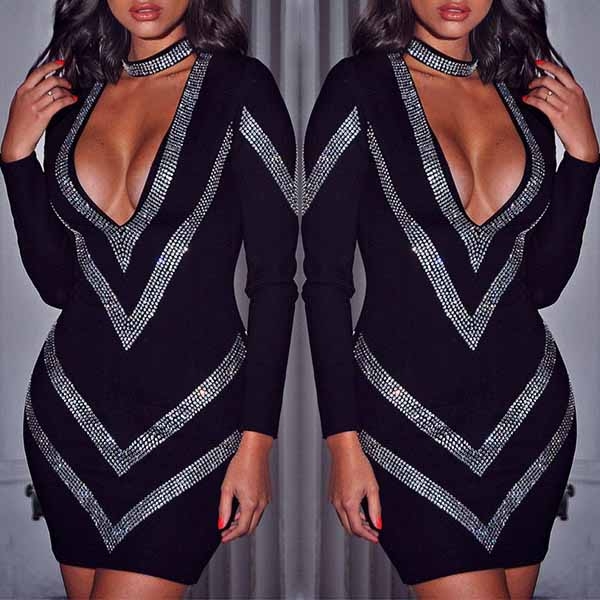 The deep v-neck an rhinestone details make this piece look so sexy and stunning,and the bodycon