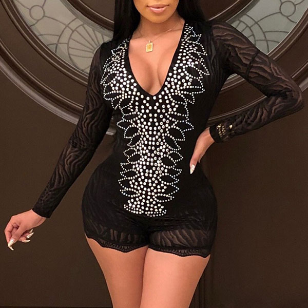 You can showcase your sexy and seductive curve through this tight romper. The deep v-neck design can