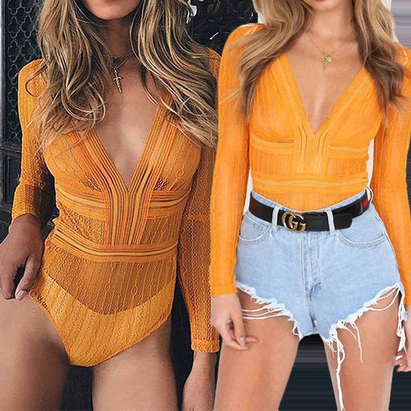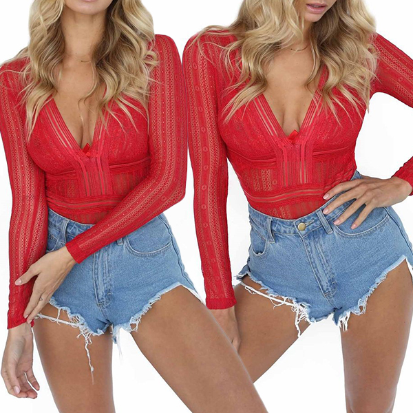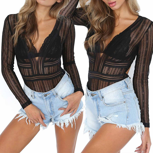 You can easily win more eyes when you wear this alluring bodysuit. See-through lace design makes it look so