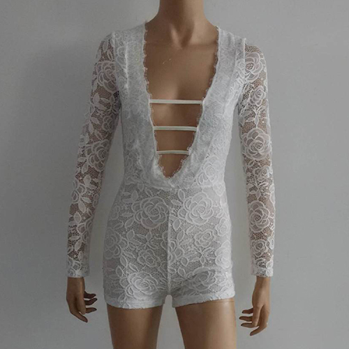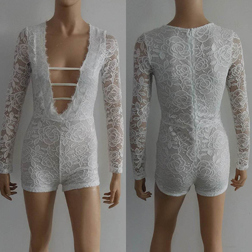 Sexy Deep V-neck Long Sleeve Slim Fit Lace Rompers