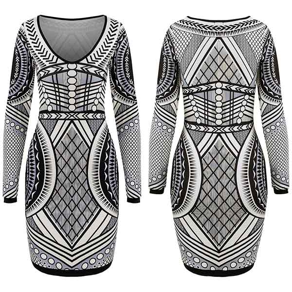 such as this creation. Features chic printed pattern,with long sleeve,deep v-neck and a fit silhouette