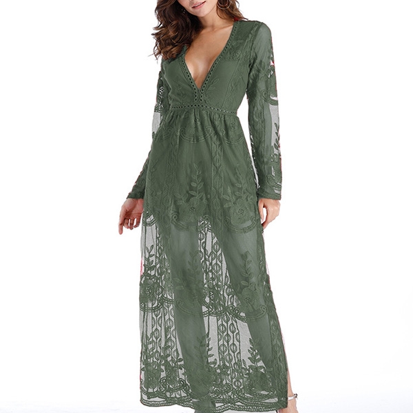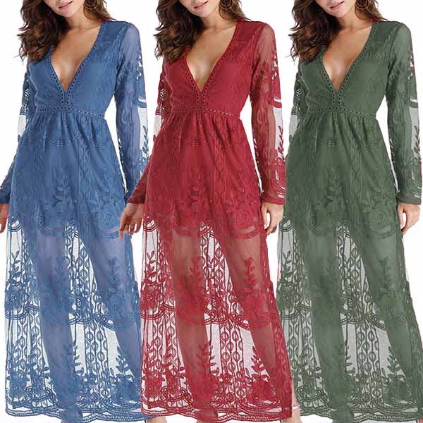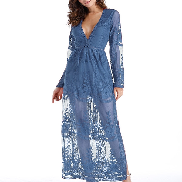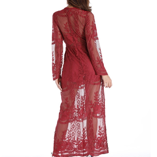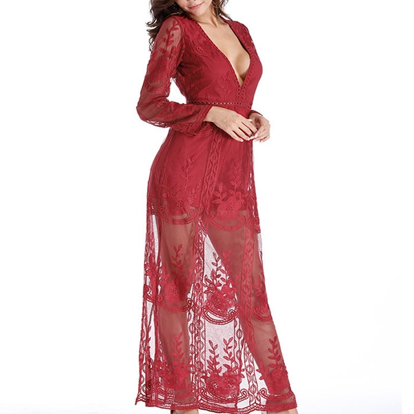 long sleeve dress. The deep v-neck design can enhance your feminine appeal,and the embroidered