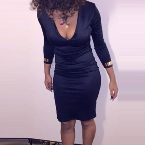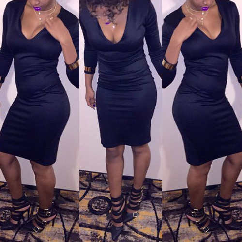 That's why we love this dress. Solid color with long sleeve,deep v-neck and a super fit silhouette,