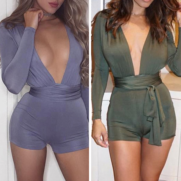 Why not flaunt off your seductive curve and alluring style through this romper? Solid color style,accompanied with long