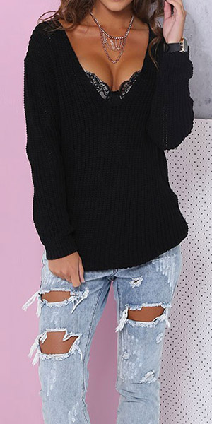 This knit sweater will give you a sexy look thanks to its deep v-neck design.