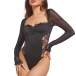 Sexy Deep V-neck Long Sleeve Solid Color Lace Bodysuit