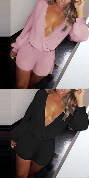 Solid color style,designed with long sleeve and a deep v-neckline,sexy and charming. Decorated
