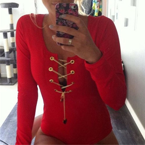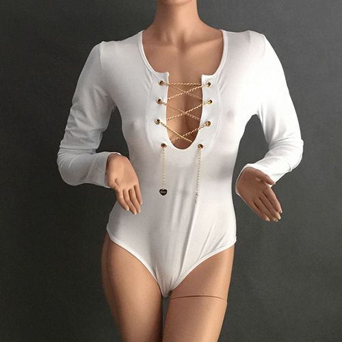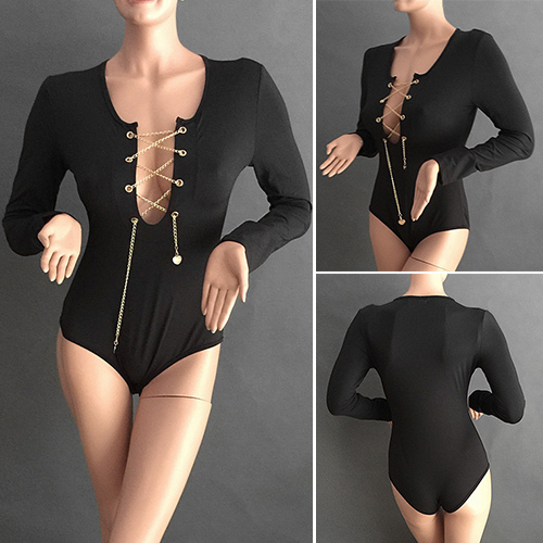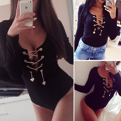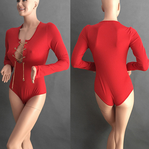 This long sleeve romper can give you a very sexy look. Solid color style,its v-neckline
