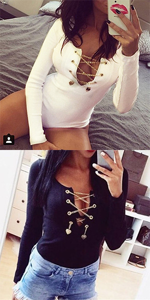 decorated with chain,making it look more eye-catching and chic. And its super fit silhouette