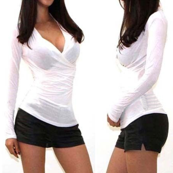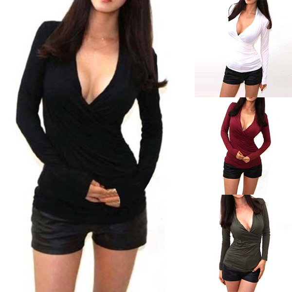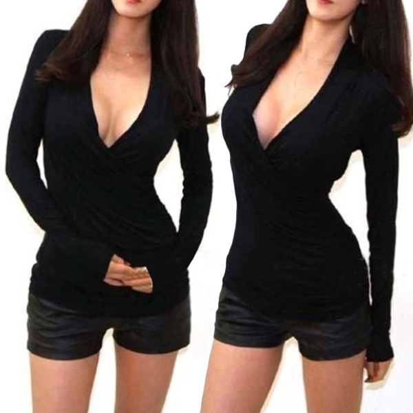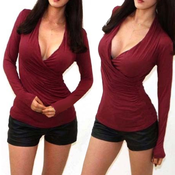 You can easily achieve for a cozy yet sexy style with this t-shirt. It is styled with a solid color,long sleeve,deep v-neck