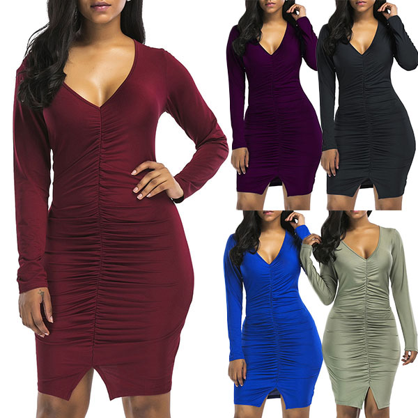 v-neck and a fit silhouette,this dress can easily sketch out your seductive curve. Moreover,