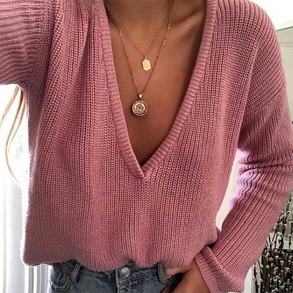 In the early autumn,this sweater can be your good choice. Solid color style,the deep v-neck design