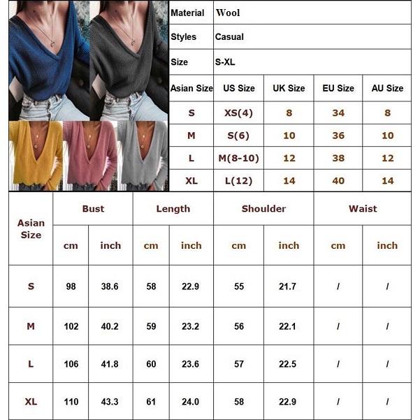 XL : Bust : 110cm(43.31"); Shoulder : 58cm(22.83"); Length : 61cm(24.02");