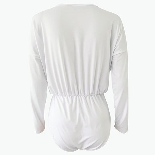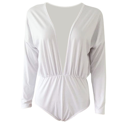 This romper features solid color style,with long sleeve and deep v-neck design,sexy and sultry.