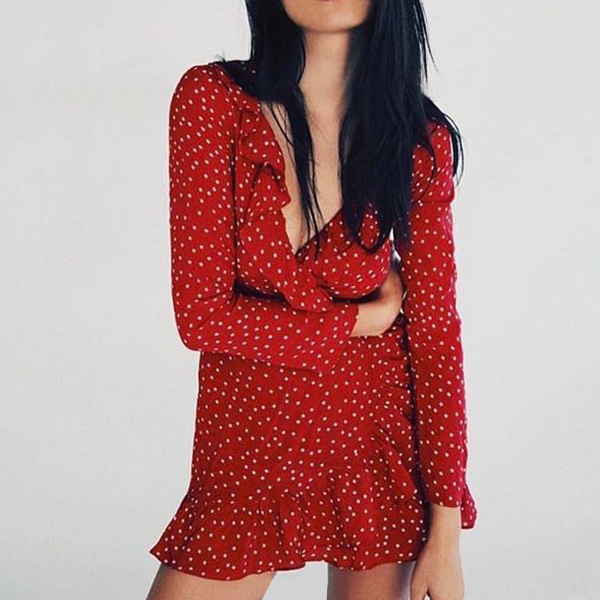 dress to your wardrobe ensemble. The stars printed details lend you a playful and romantic vibe,while its deep v-neck