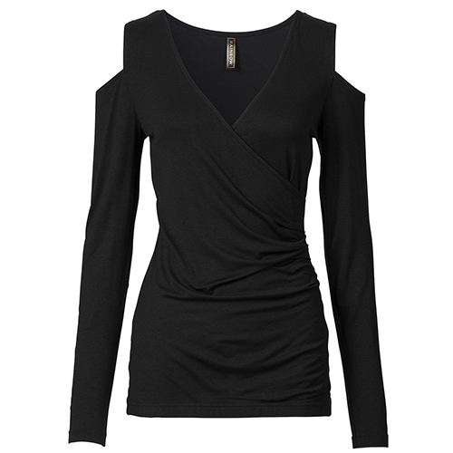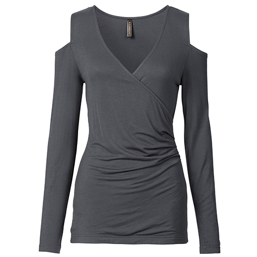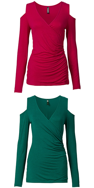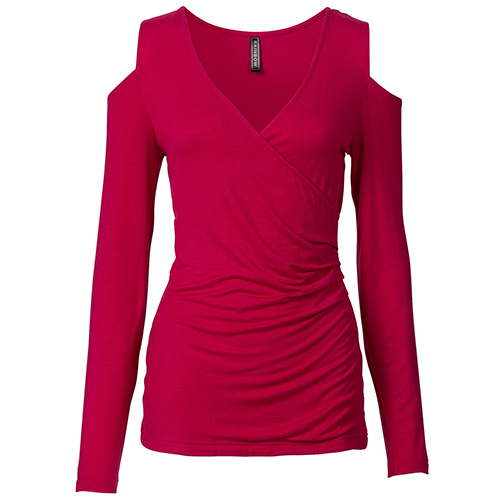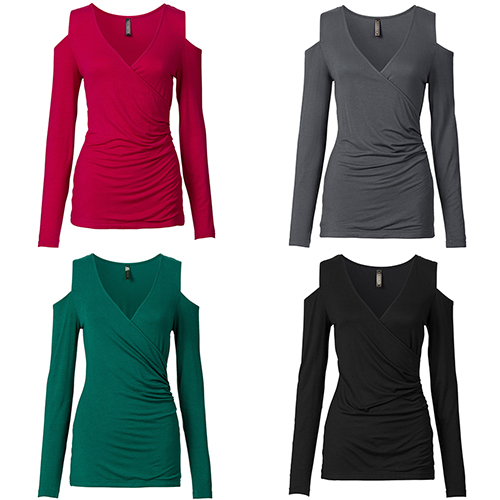 This t-shirt features solid color style,its off-shoulder and deep v-neckline deisgn makes it look sexy