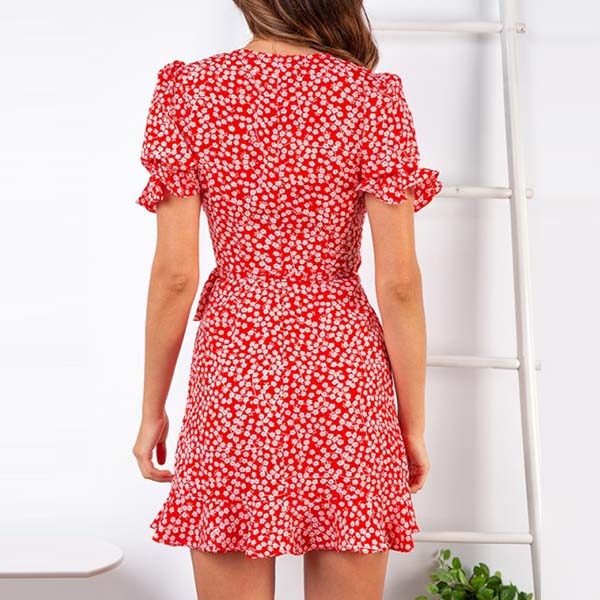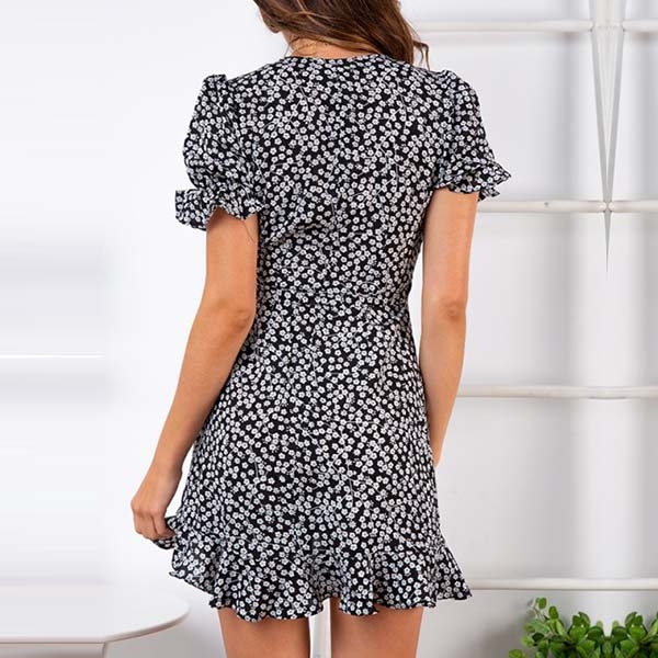 printed details,the deep v-neck,puff sleeve and ruffle design make it look so sexy and seductive. When adding