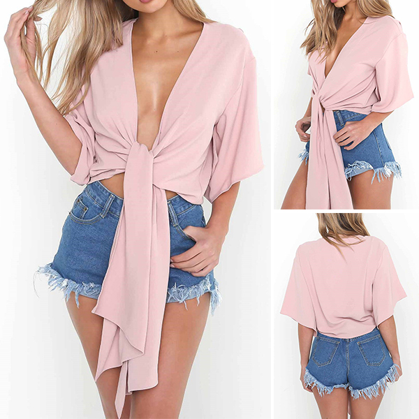 with short sleeve,deep v-neck and distinctive lace-up hem,this wonderful piece can give you a sexy and charming look.