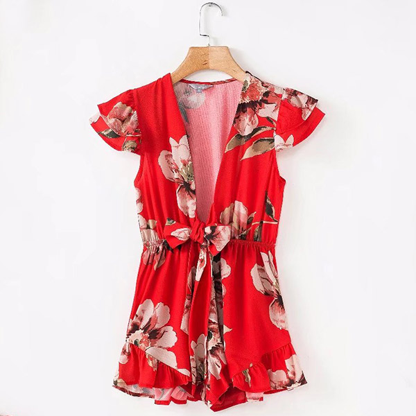 Enhancing your feminine appeal is easy with this romper. Its vibrant and eye-catching floral print design