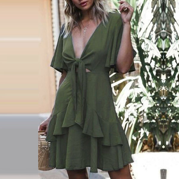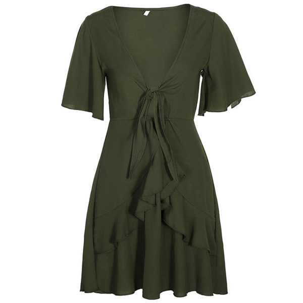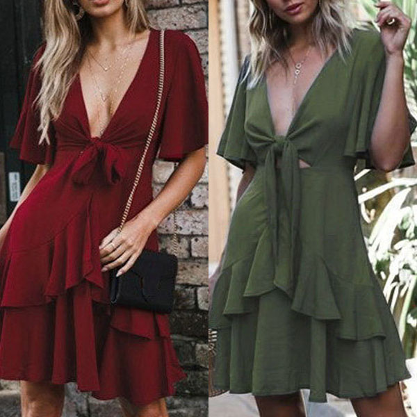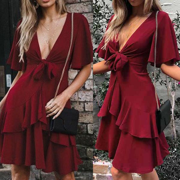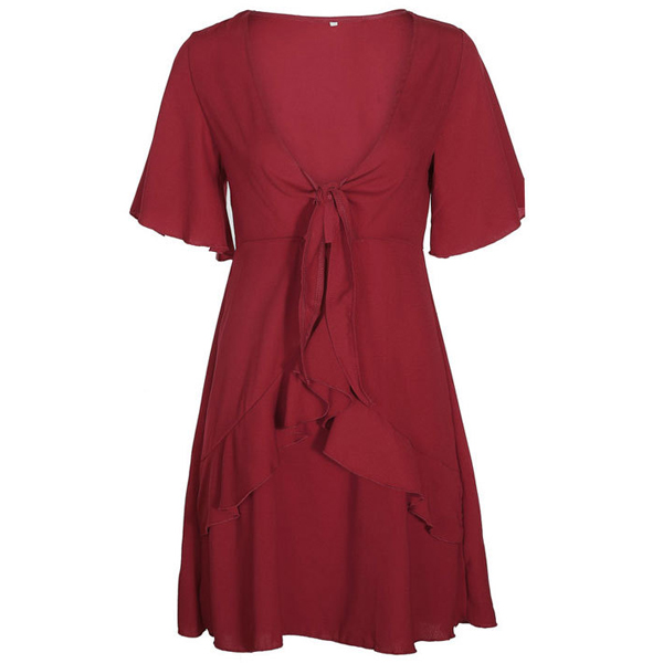 The deep v-neck and ruffle hem design make this piece look more charming and beautiful. Perhaps adding a tassel