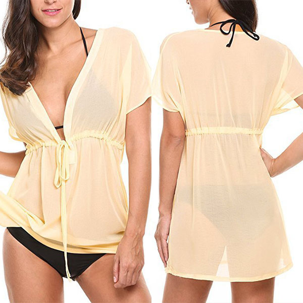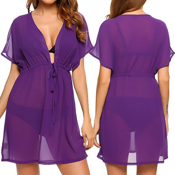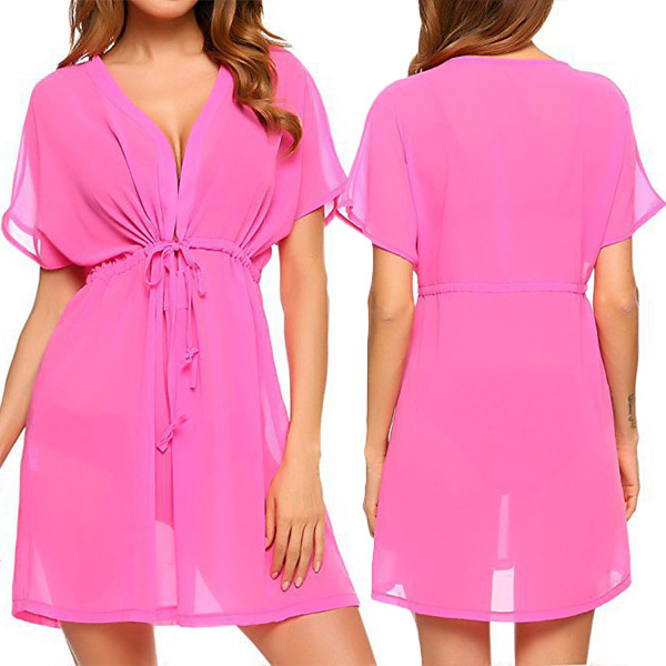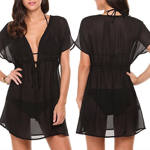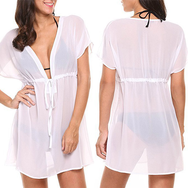 finished with short sleeve,deep v-neck and drawstring waist design,this dress can give you a sexy appearance.