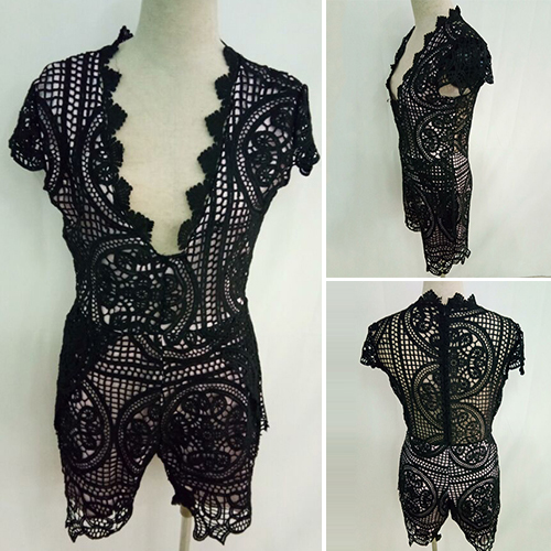 breathtaking lace romper. Designed with short sleeve,deep v-neck and a fit silhouette,this lace romper is