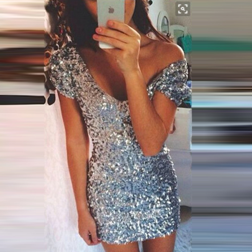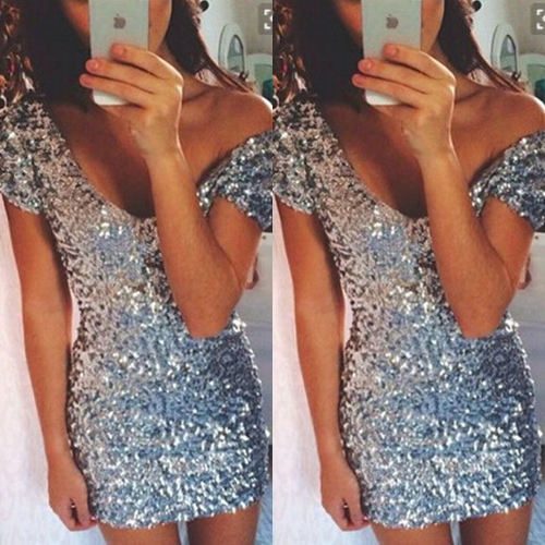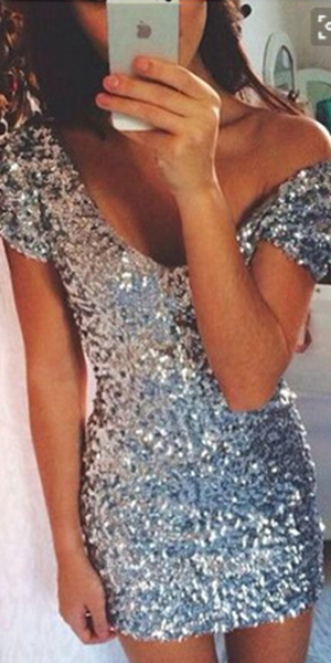 this gorgeous sequin dress on hand. Designed with short sleeve,deep v-neckline and a