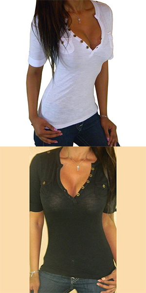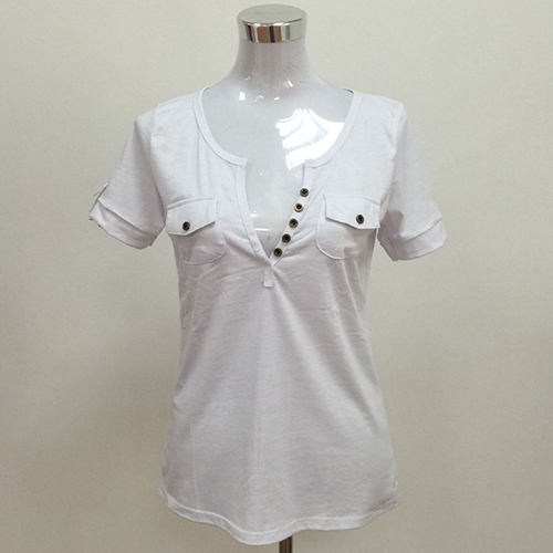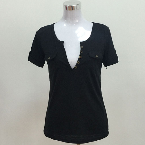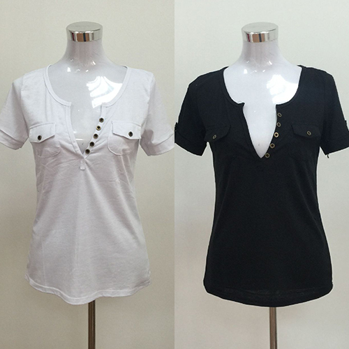 with short sleeve and deep v-neck design,simple but a little sexy. And its chest patch pockets design