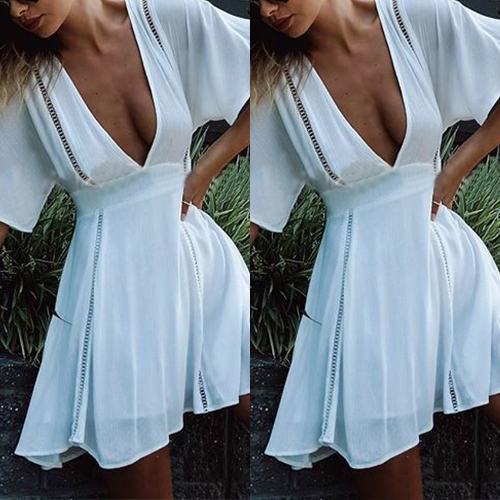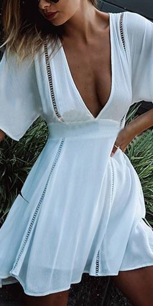 with short sleeve and deep v-neck design,sexy and charming. You can try to adding a stunning necklace