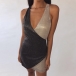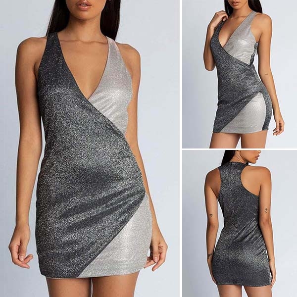 Contrast color style,finished with sleeveless,deep v-neck and a fit silhouette design,this dress is
