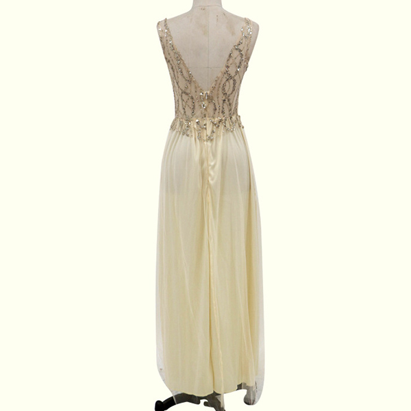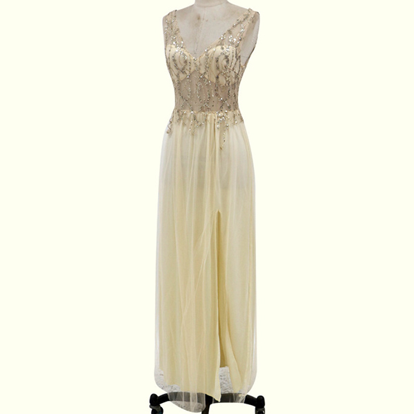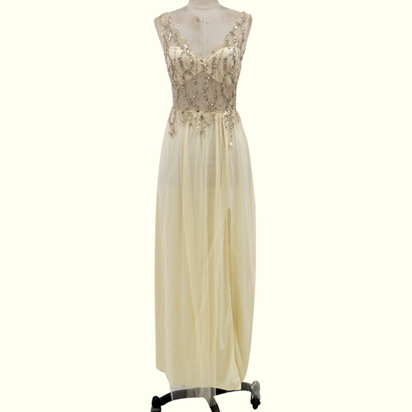 Sexy Deep V-neck Sleeveless Backless Long Slit Hem Paillette Dress