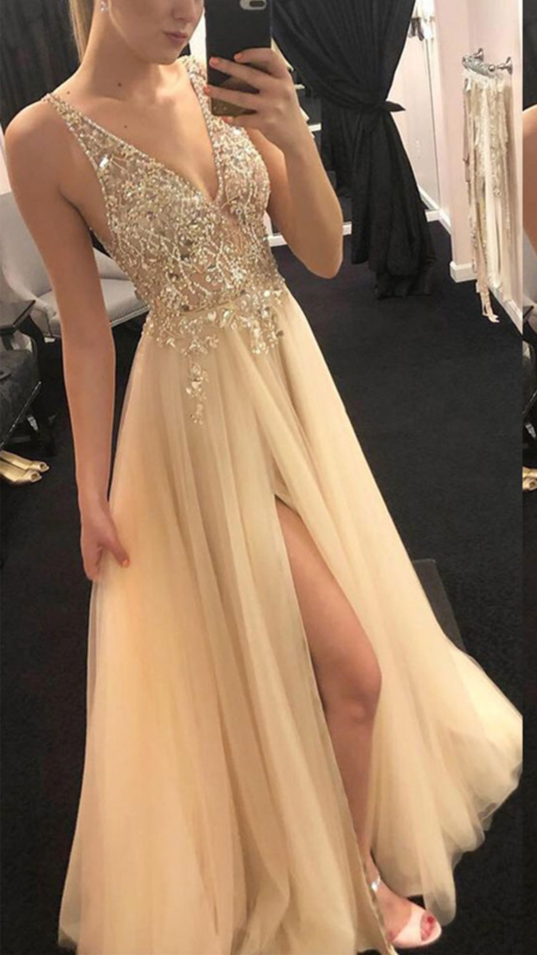 The paillette dress in lace woven fabric, with paillette, deep v-neck and sleeveless.Plunging necklineand backless design, which can highlight your fair skin and exquisite collarbone, sexy and attractive.Long slit hem would set off your long and slender legs.Adding one-pair of high-heeled shoes to youis a good idea to show off your beauty.