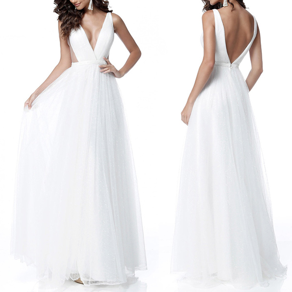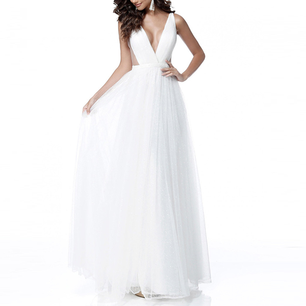 set off your charm.Deep v-neck, sleeveless and ruffle hemline design,simple and concise. This dress which