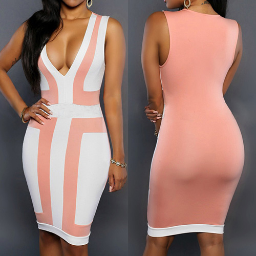 bodycon dress! Contrast color style,designed with sleeveless,deep v-neckline and a super fit