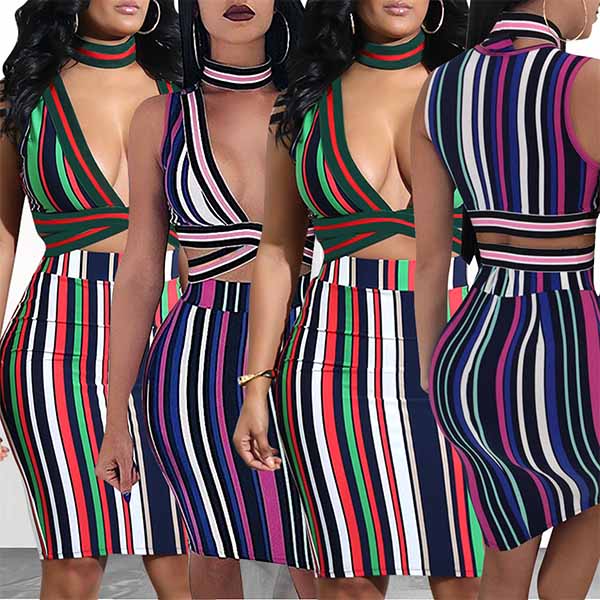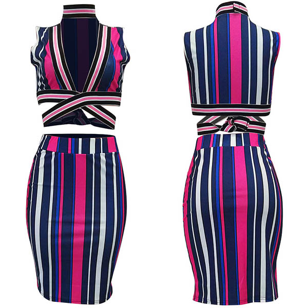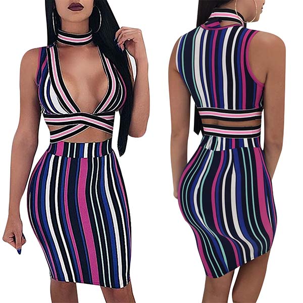 You can arouse a splash when you dress yourself up with this two-piece set. Striped style,including