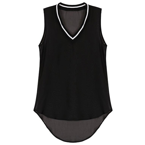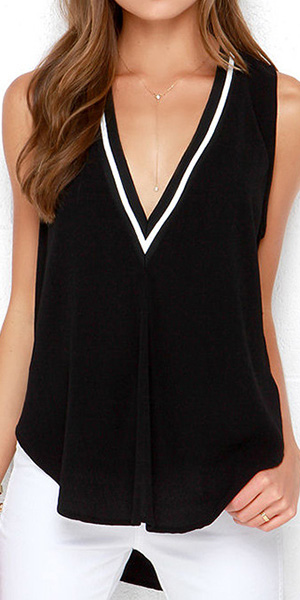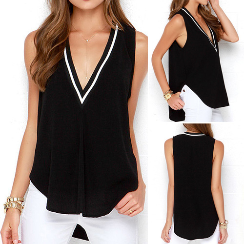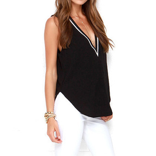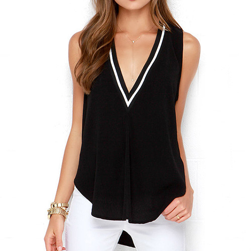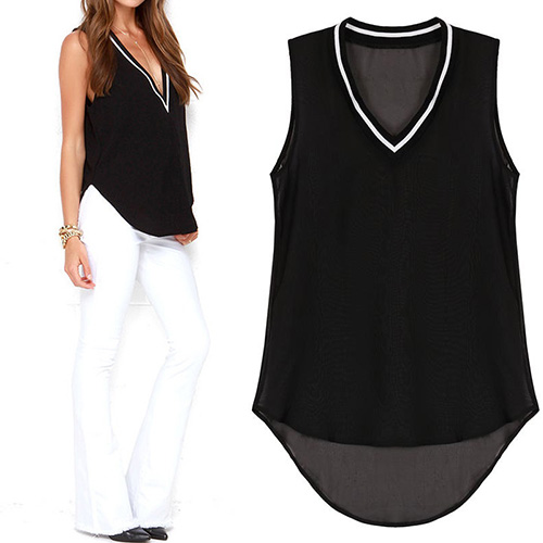 Crafted from soft and breezy chiffon material,designed with sleeveless,deep v-neckline and