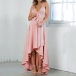 deep v-neck and a high-low hem,delicate,alluring and sexy. Paired with your sexy heels,stunning necklace and elegant clutch,