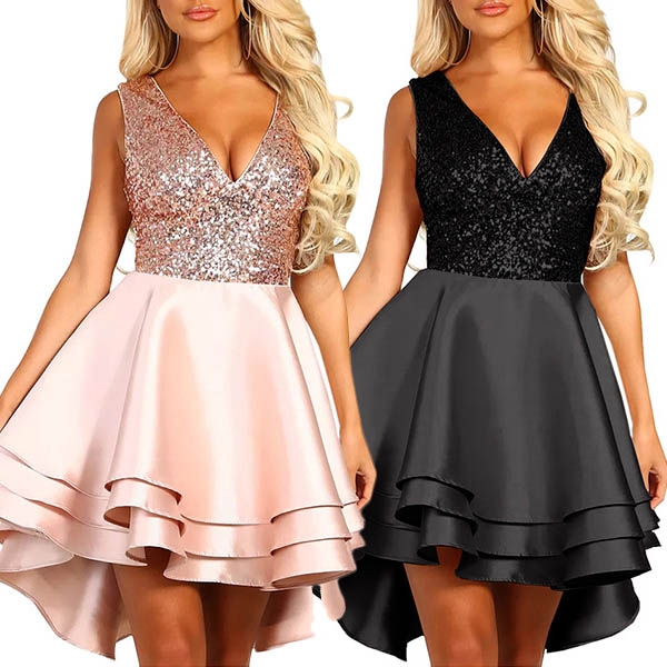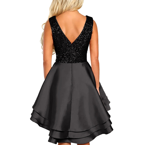 The deep v-neck and high-low hem design will enhance its charm,and the sequin spliced details can offer
