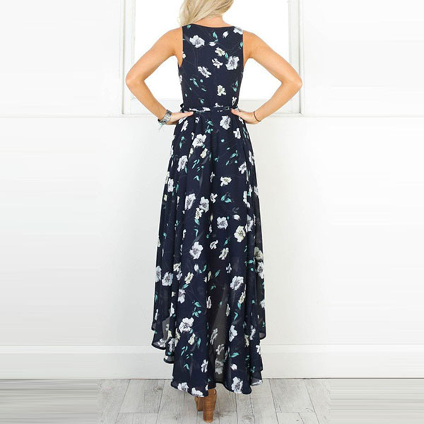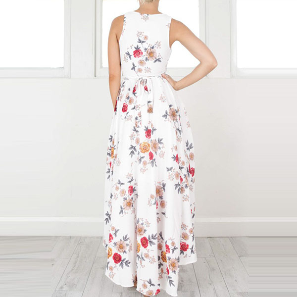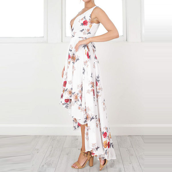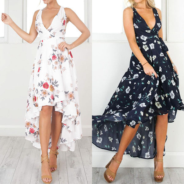 have this dress on hand. Boasts romantic and vibrant floral print,accompanied with sleeveless,deep v-neck,high waist and
