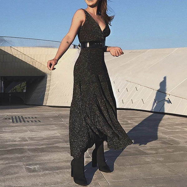 For any last-minute invitation,you can count on this sleeveless dress to portray your elegant and charming image.