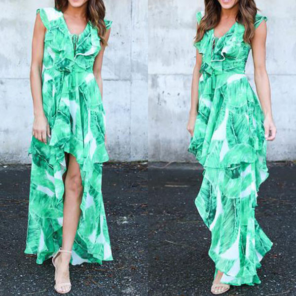 this dress more outstanding. Outfitted with sleeveless,deep v-neck and an irregular hem,sexy and charming. It is easy for