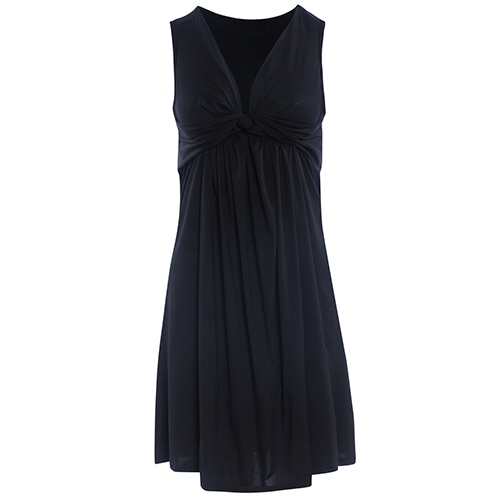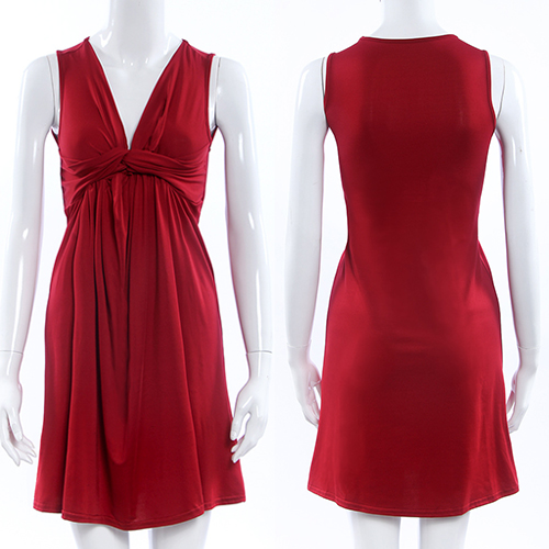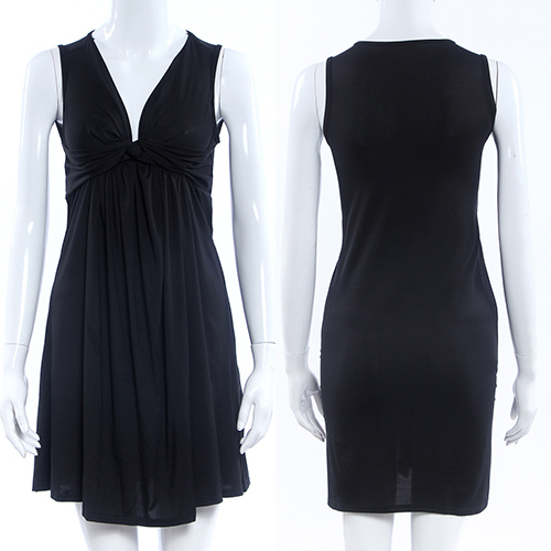 an elegant and generous solid color,with sleeveless,deep v-neck and high waist design. Plus,