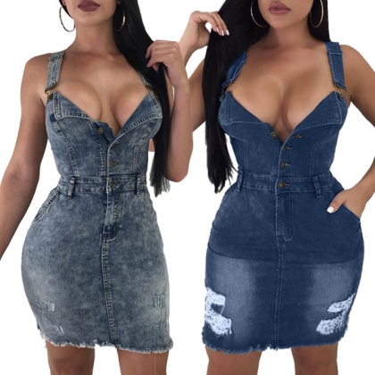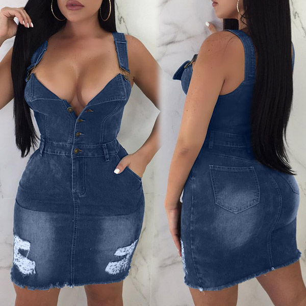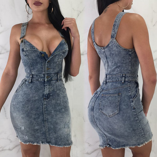 two pockets at the butt of the denim dress.Add one pair of high-heeled shoes to you, you would more