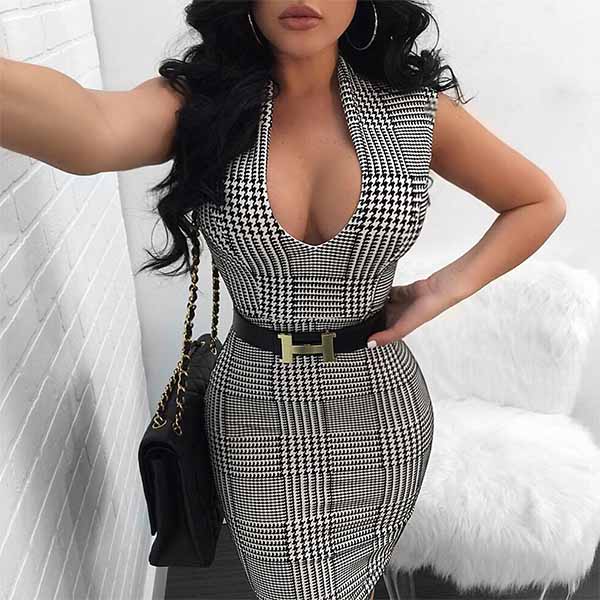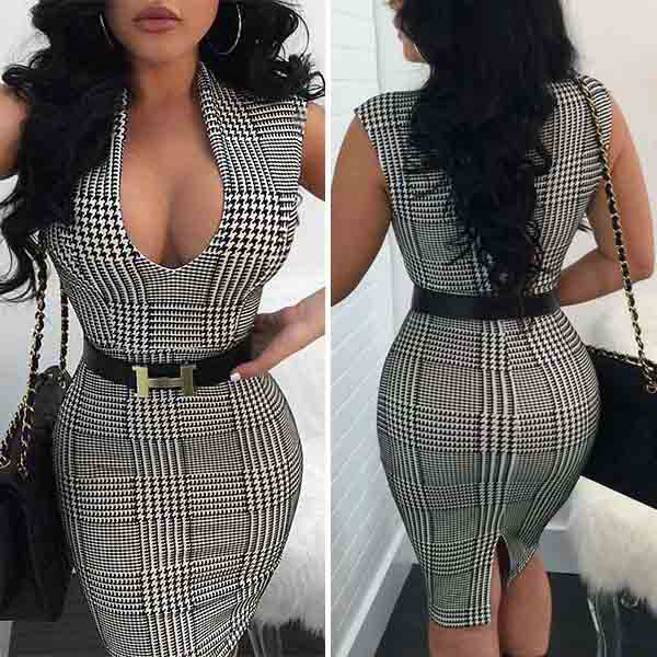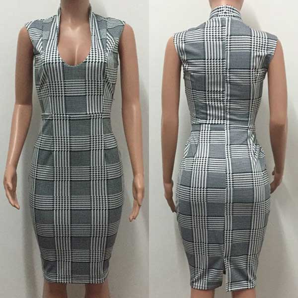This effortless stylish dress is perfect for any last-minute invitation. Plaid style,designed with sleeveless,