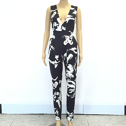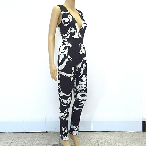 eye-catching printed pattern,with sleeveless,deep v-neckline and a sleek silhouette,this